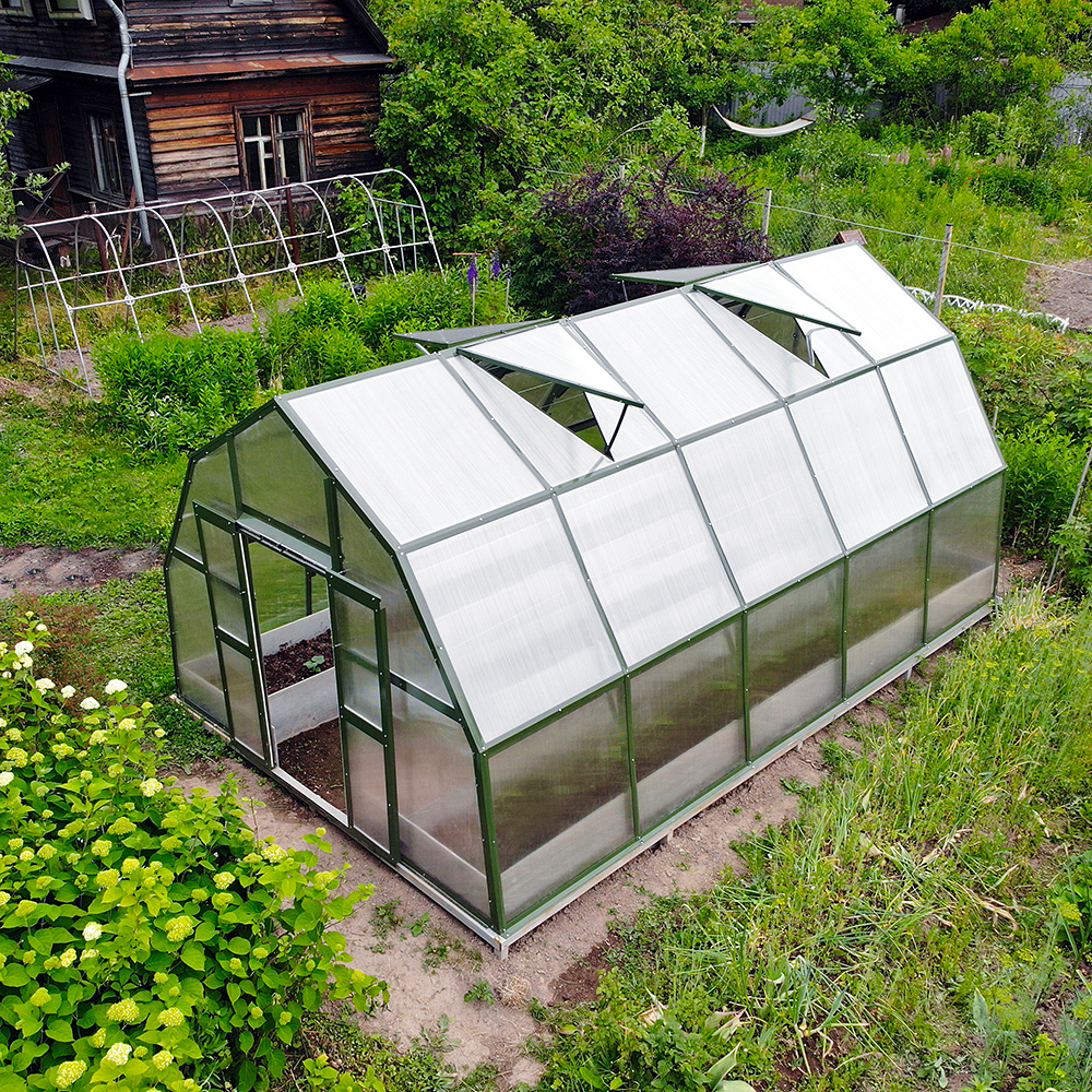 Изначально теплицы GLASS HOUSE разрабатывались под покрытие стеклом, поэтому запас прочности конструкции позволяет с легкостью выдерживать повышенные ветровые и снеговые нагрузки!